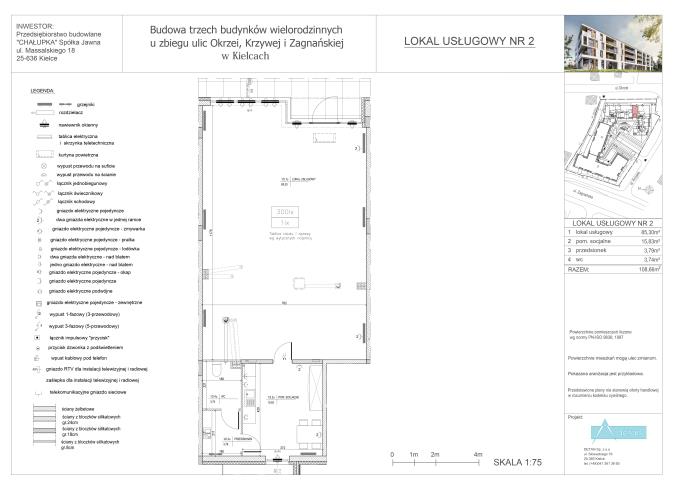 Od strony ul. Okrzei urządzony parking dla klientów korzystających z usług lokali.