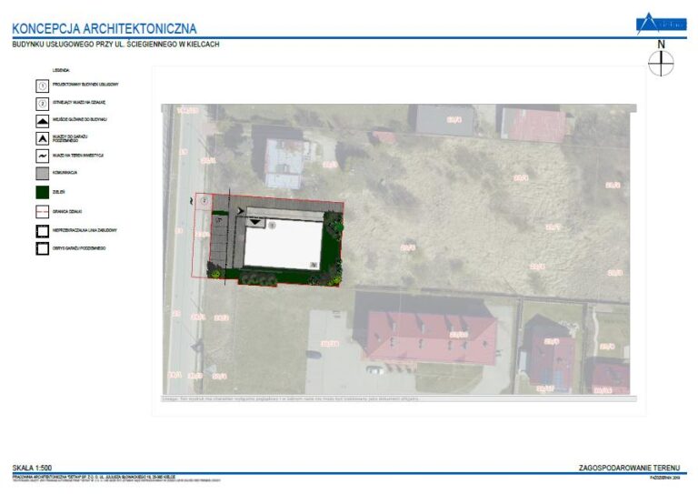 Oferuję na sprzedaż działkę budowlaną o powierzchni 1000 m2, uzbrojoną z koncepcją budowy budynku biurowo- usługowego o powierzchni pum 1100 m2 z podziemną halą garażową oraz miejscami zewnętrznymi na terenie (łącznie 23 miejsca postojowe).